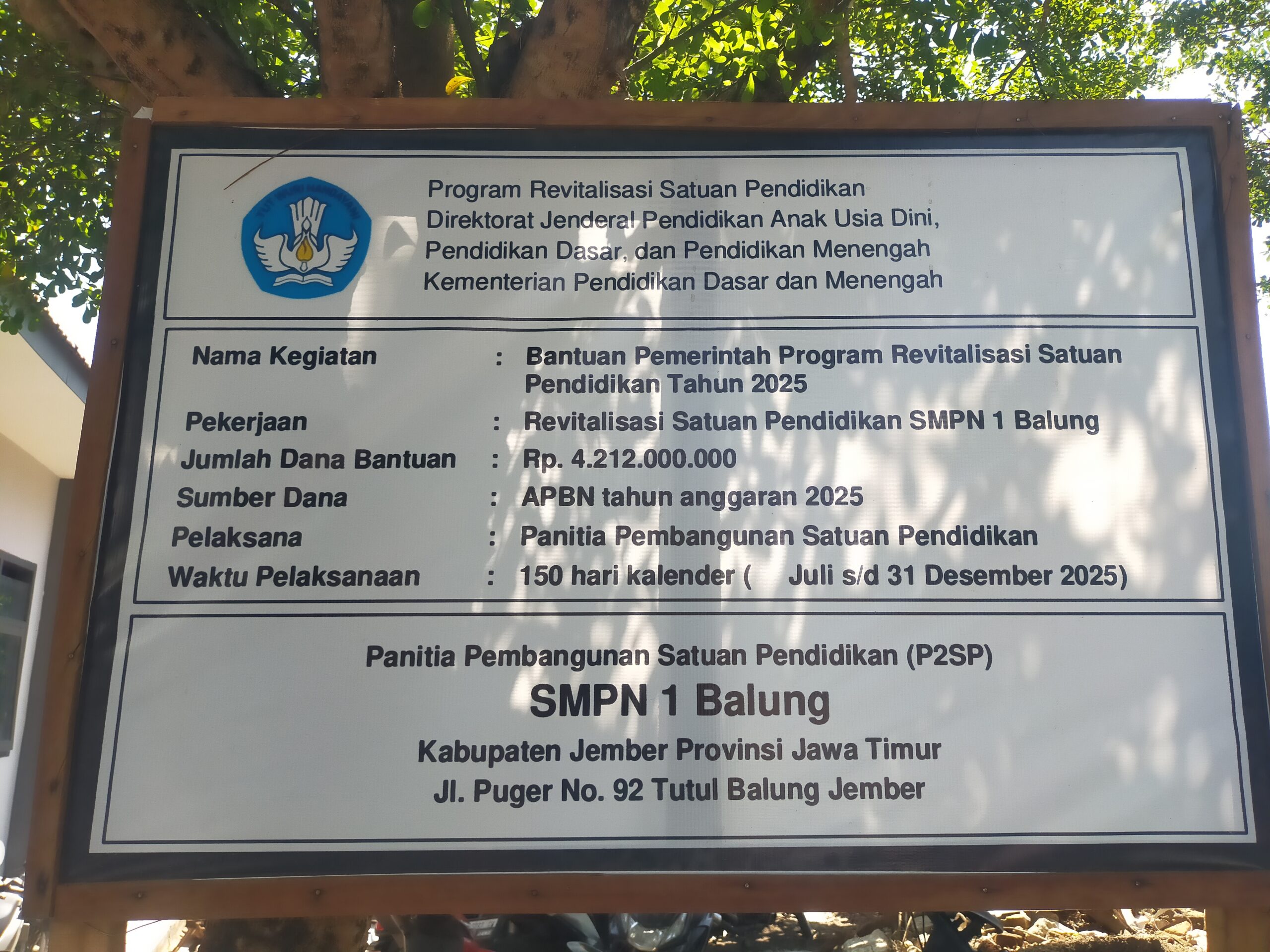 Berita sebelumnya, Rohim menyampaikan SMPN 1 Balung memperoleh anggaran dari pemerintah pusat melalui Kementerian Pendidikan Dasar dan Menengah (Kemendikdasmen) sebesar Rp4,212.000.000 (Empat miliar dua ratus dua belas juta rupiah).