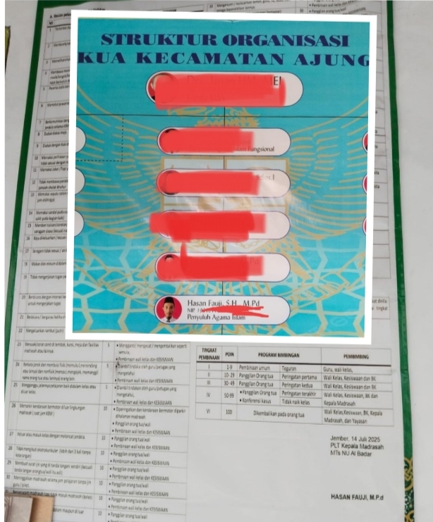Foto: Susunan organisasi KUA Kecamatan Ajung. (Dok Tranparansi)