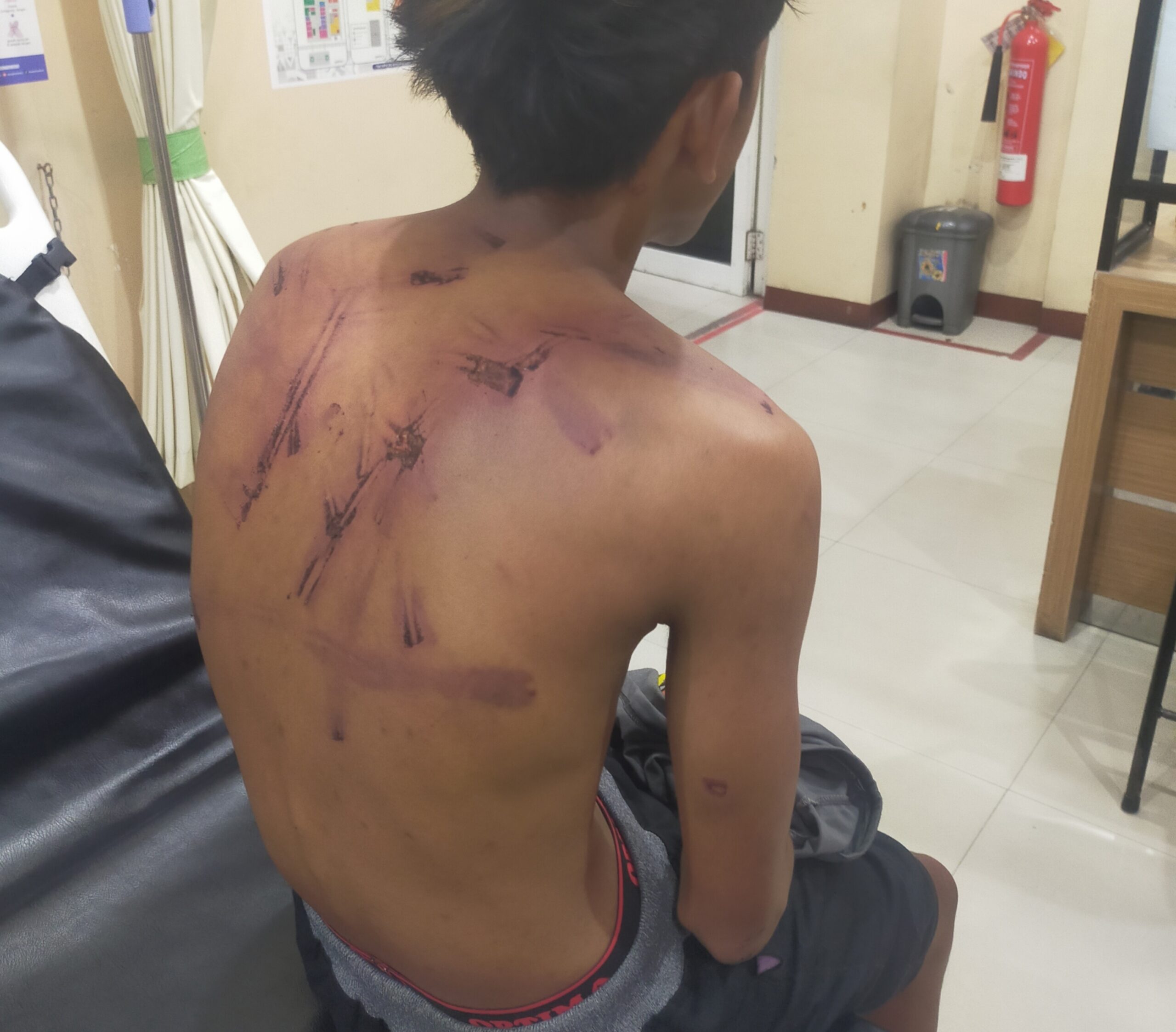 Foto: Rofiki korban dugaan penganiayaan saat menjalani visum di RS Bhayangkara Bondowoso.