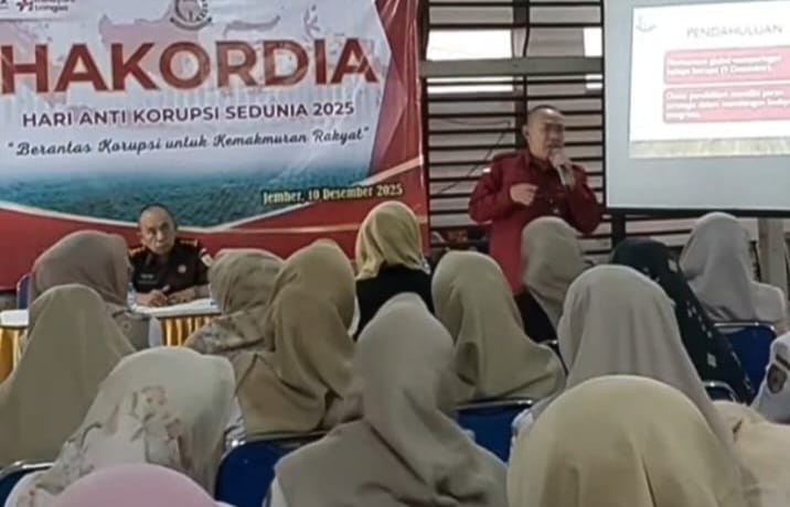 Jember, transparansi.co.id – Kepala sekolah dari tingkat TK, SD hingga SMP dan pengawas sekolah se-Kabupaten Jember mengikuti penyuluhan anti korupsi dari Kejaksaan Negeri (Kejari) Jember yang berkolaborasi dengan Dinas Pendidikan (Dispendik) Jember bertempat di Aula SMPN 1 Jember pada Rabu, (9/12/2025).