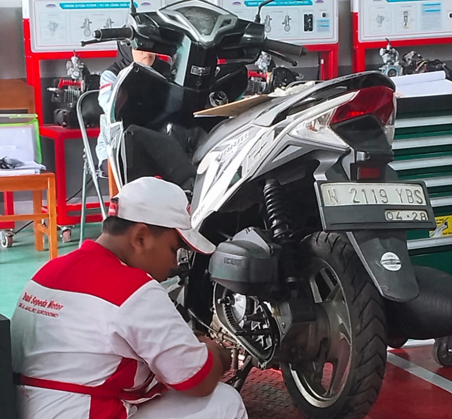 Foto: Ketika Anak – anak praktik sepeda motor, jurusan otomotif.